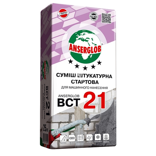 Детальні характеристики Суміш штукатурна стартова Anserglob ВСТ-21, 25 кг.